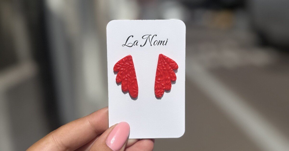 Maak een krachtig stijlstatement met deze unieke, handgemaakte oorbellen van polymeerklei in een opvallende rode kleur. De oorbellen zijn vormgegeven als gestileerde vleugels of bladeren en hebben een subtiele structuur die een speels effect geeft.